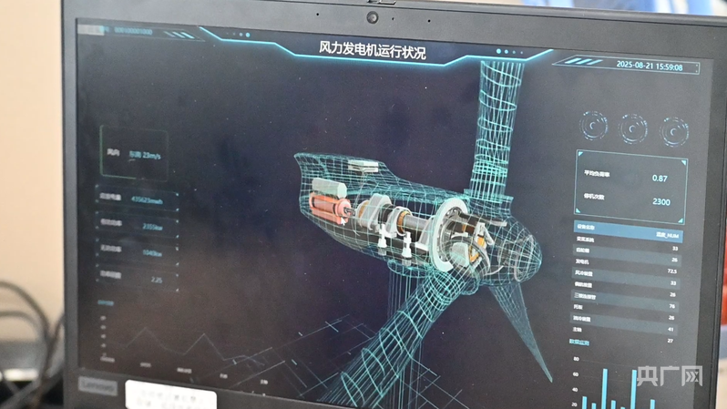 在美林?jǐn)?shù)據(jù)西安總部辦公區(qū),電腦進(jìn)入業(yè)務(wù)數(shù)據(jù)系統(tǒng)后,遠(yuǎn)在千里之外的大型風(fēng)力發(fā)電機(jī)運(yùn)行的實(shí)時(shí)動(dòng)態(tài),一目了然。