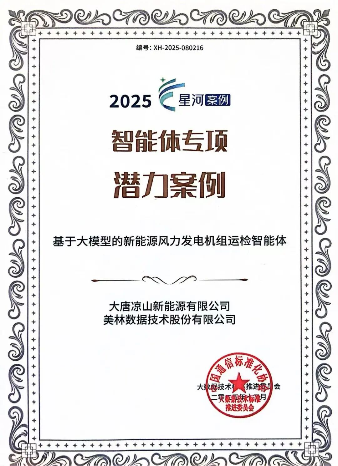 2025年12月18日,由中國通信標(biāo)準(zhǔn)化協(xié)會(huì)主辦的“2025數(shù)據(jù)資產(chǎn)管理大會(huì)”在北京隆重召開。會(huì)上,2025第九屆數(shù)據(jù)智能“星河”案例評(píng)選結(jié)果正式公布。大唐涼山新能源有限公司與美林?jǐn)?shù)據(jù)技術(shù)股份有限公司聯(lián)合申報(bào)的《基于大模型的新能源風(fēng)力發(fā)電機(jī)組運(yùn)檢智能體》從超930份申報(bào)項(xiàng)目中脫穎而出,成功入選智能體專項(xiàng)潛力案例,彰顯了大模型技術(shù)在新能源電力垂直行業(yè)的深度融合與創(chuàng)新應(yīng)用價(jià)值獲得認(rèn)可,為行業(yè)智能化轉(zhuǎn)型提供了可復(fù)制的實(shí)踐經(jīng)驗(yàn)。