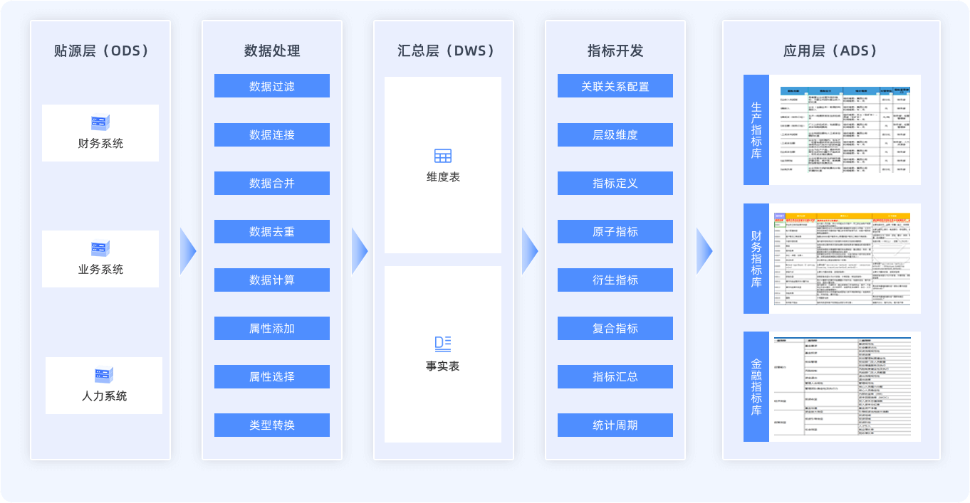 以數(shù)據(jù)資產(chǎn)整合與業(yè)務(wù)數(shù)字化管理為目標(biāo),構(gòu)建全業(yè)務(wù)鏈條的數(shù)據(jù)建模與指標(biāo)管理體系,整合多源數(shù)據(jù)構(gòu)建維度表與事實表,按“原子-衍生-復(fù)合”流程開發(fā)指標(biāo)形成指標(biāo)庫,依托平臺實現(xiàn)指標(biāo)全流程線上化與全生命周期管理。