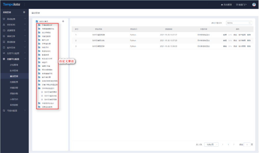 綜上所述,智能制造領(lǐng)域的算法模型創(chuàng)新成果應(yīng)用過程中存在著難以快捷實(shí)現(xiàn)工業(yè)知識(shí)復(fù)用的限制。為解決此問題,推動(dòng)智能制造領(lǐng)域工業(yè)知識(shí)復(fù)用,美林?jǐn)?shù)據(jù)在Tempo AI平臺(tái)中引入適合于工業(yè)知識(shí)遷移與復(fù)用的自定義算法模塊,該模塊支持多種開發(fā)語言,包括Matlab、Java、Scala和Python等,通過規(guī)范化算法節(jié)點(diǎn),實(shí)現(xiàn)拖拉拽一鍵式數(shù)據(jù)分析與機(jī)理算法開發(fā)流程應(yīng)用,并支持多種API調(diào)用方式。
