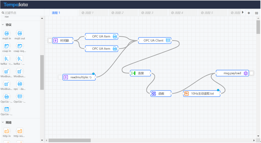 01、數(shù)據(jù)采集 基于Tempo DF平臺(tái)OPC-UA標(biāo)準(zhǔn)協(xié)議進(jìn)行數(shù)據(jù)采集,實(shí)時(shí)讀取DCS系統(tǒng)的設(shè)備運(yùn)行數(shù)據(jù),通過Kafka接入數(shù)據(jù),實(shí)現(xiàn)數(shù)據(jù)實(shí)時(shí)采集;同時(shí)提供了各類常見的數(shù)據(jù)庫接入?yún)f(xié)議,可以實(shí)時(shí)接入業(yè)務(wù)系統(tǒng)數(shù)據(jù)。