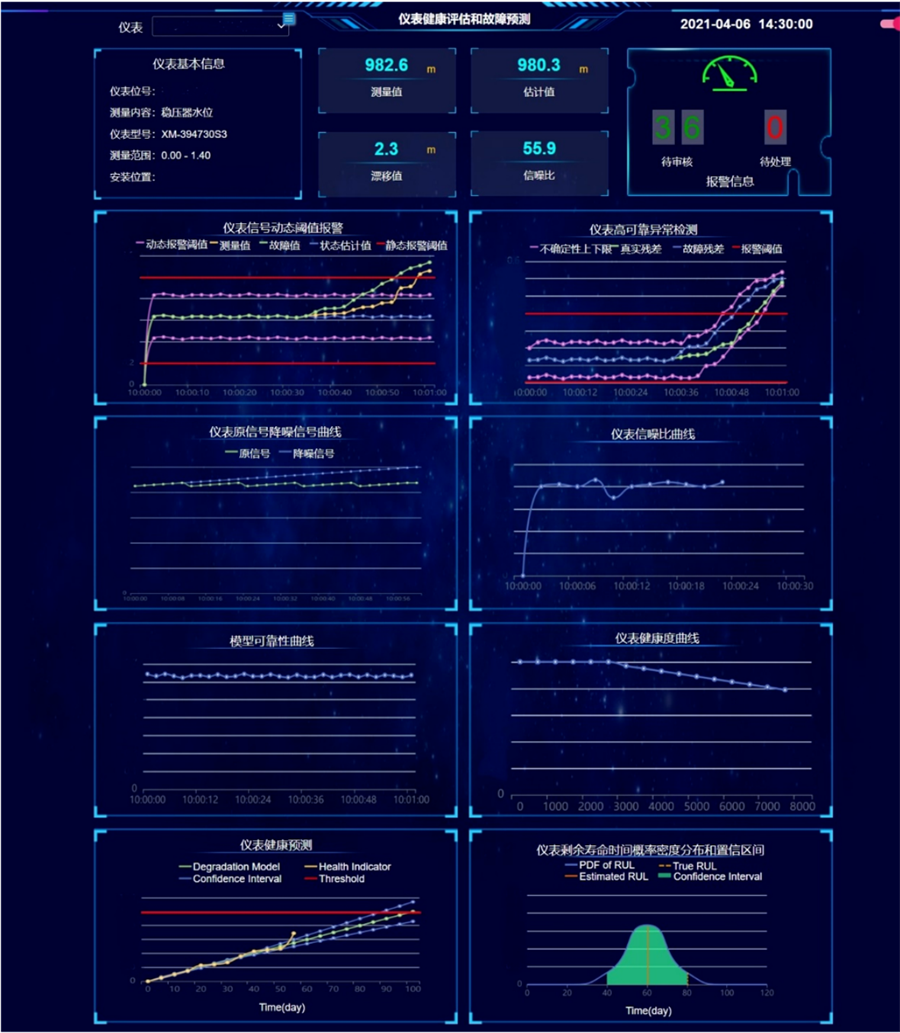 04、數(shù)據(jù)可視化展示 通過Tempo平臺(tái)的BI可視化功能, 根據(jù)最優(yōu)狀態(tài)估計(jì)結(jié)果實(shí)現(xiàn)儀表的健康狀態(tài)評(píng)估, 并實(shí)時(shí)顯示其性能退化趨勢。