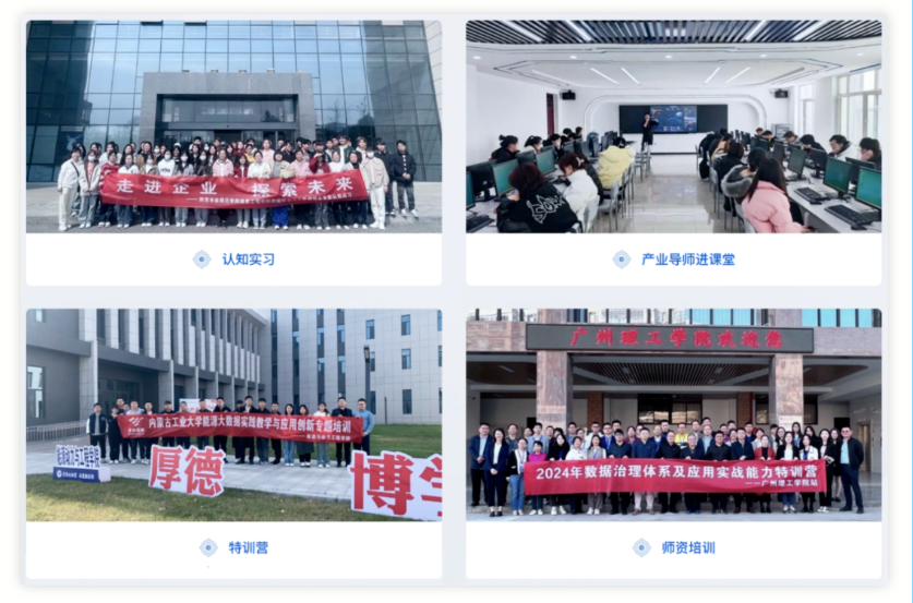 03以校企資源合作為鏈接,推動(dòng)區(qū)域人才高質(zhì)量發(fā)展 基于校企協(xié)同構(gòu)建產(chǎn)業(yè)資源鏈接機(jī)制,推動(dòng)教學(xué)創(chuàng)新與產(chǎn)業(yè)實(shí)踐相融合。通過(guò)共建實(shí)驗(yàn)室、聯(lián)合科研、競(jìng)賽支持等方式,為學(xué)生提供項(xiàng)目實(shí)訓(xùn)機(jī)會(huì),幫助其熟悉真實(shí)業(yè)務(wù)場(chǎng)景。同時(shí),圍繞師資培訓(xùn)、技能認(rèn)證、產(chǎn)業(yè)對(duì)接等專項(xiàng)服務(wù),為高校建立一站式產(chǎn)教融合解決方案,培養(yǎng)符合區(qū)域經(jīng)濟(jì)需求的高素質(zhì)數(shù)智人才,并在同類學(xué)校中形成示范效應(yīng)。