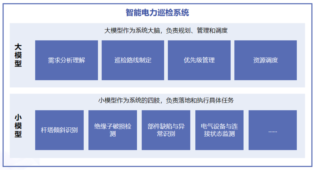 在能源行業(yè),為電網(wǎng)公司開發(fā)了智能巡檢系統(tǒng)。大模型負(fù)責(zé)制定巡檢路線和識(shí)別復(fù)雜隱患,小模型專注處理?xiàng)U塔傾斜識(shí)別、絕緣子破損檢測(cè)等具體任務(wù)。